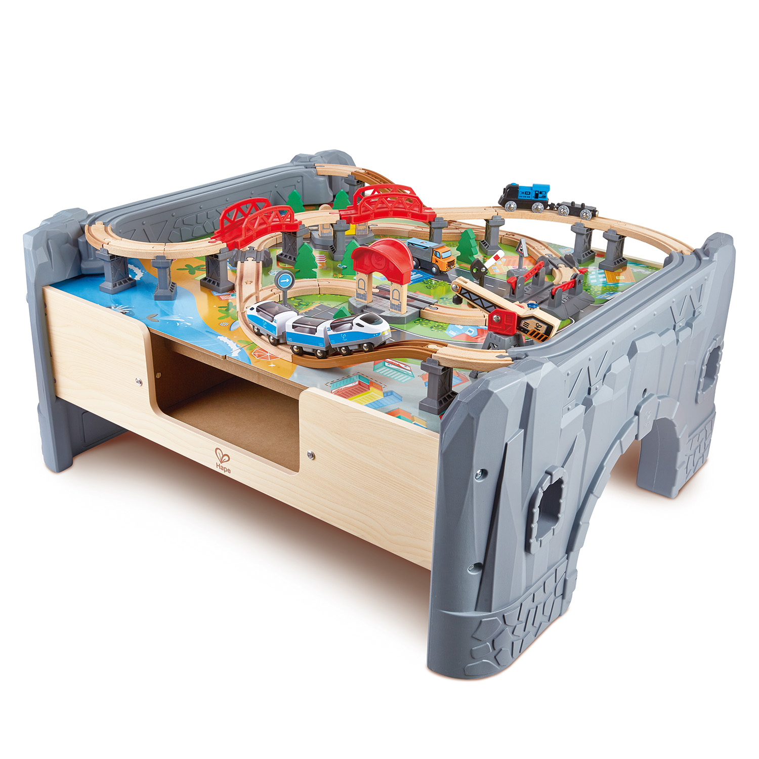 • Набор из 70 элементов, включающих стол, железнодорожные поезда, локомотив с питанием от батареек.