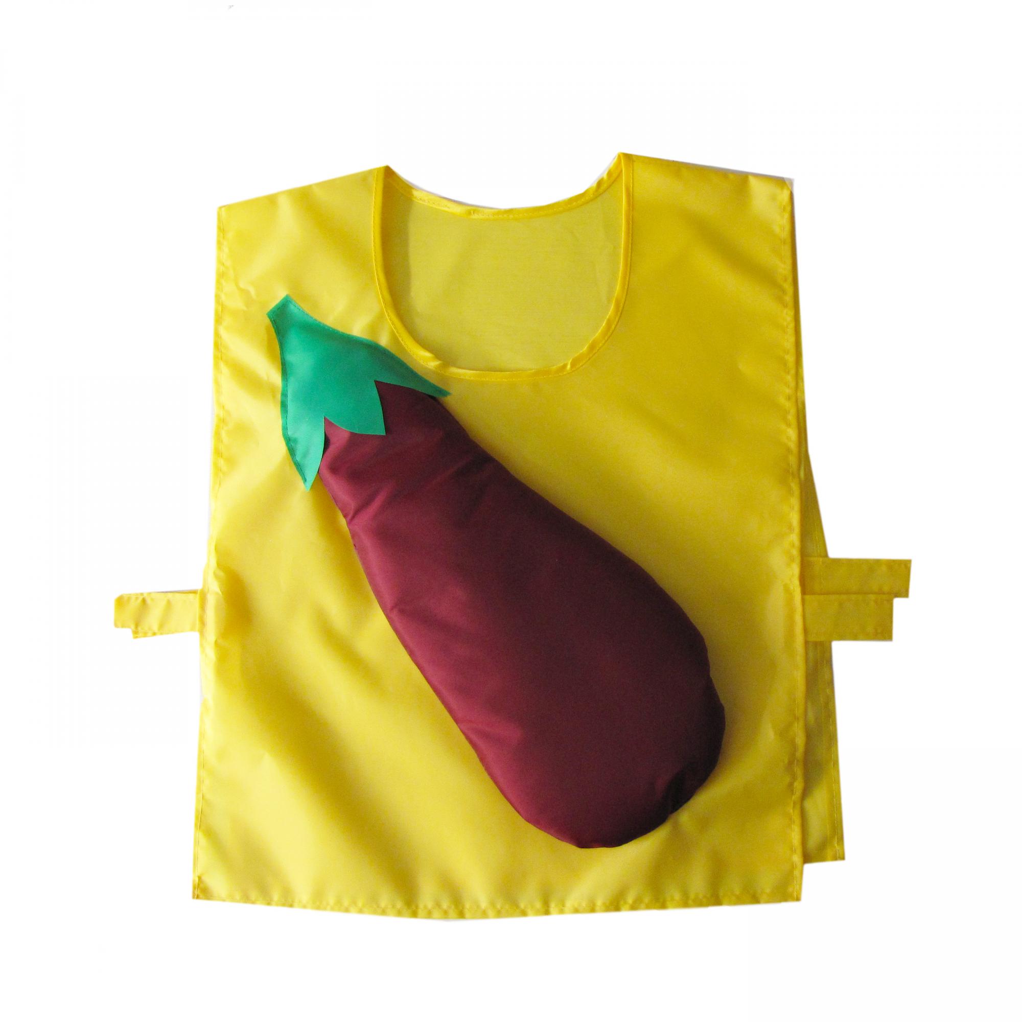 Жилетик с аппликацией баклажана - это замечательный вариант костюма для разыгрывания тематических сюжетов на занятиях или праздника урожая в детском саду.