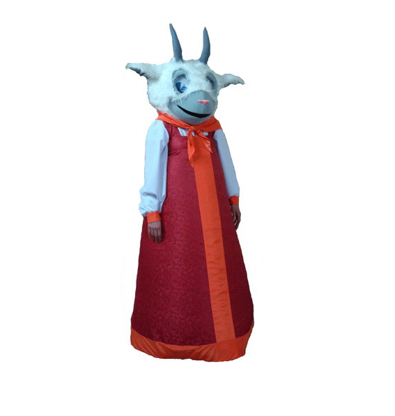 Ростовая кукла «Коза» выполнена из материалов высокого качества - текстиля и искусственного меха. В комплекте голова и костюм, стилизованный под традиционный русский сарафан.