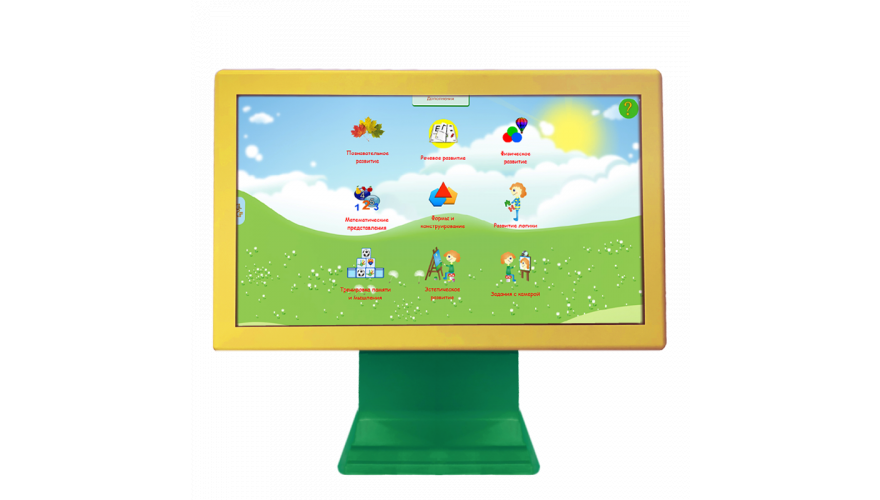 Любой ребенок от 2-х лет может самостоятельно управлять заданиями и играть, используя сенсорный мультимедийный экран.