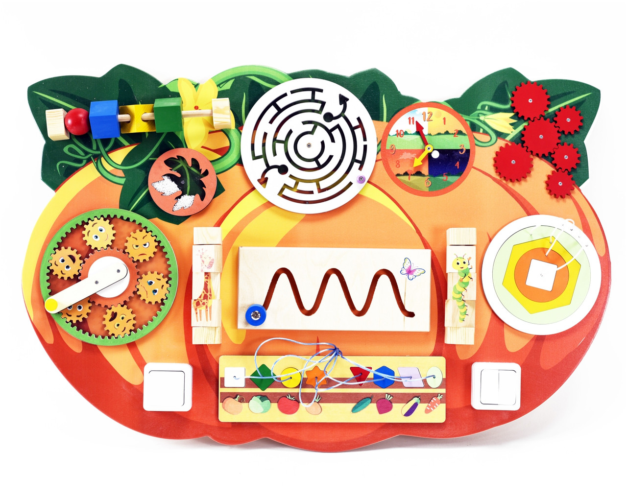 С помощью нашего бизиборда ОРАНЖЕВАЯ ТЫКВА из серии «Овощи» ваш ребенок: