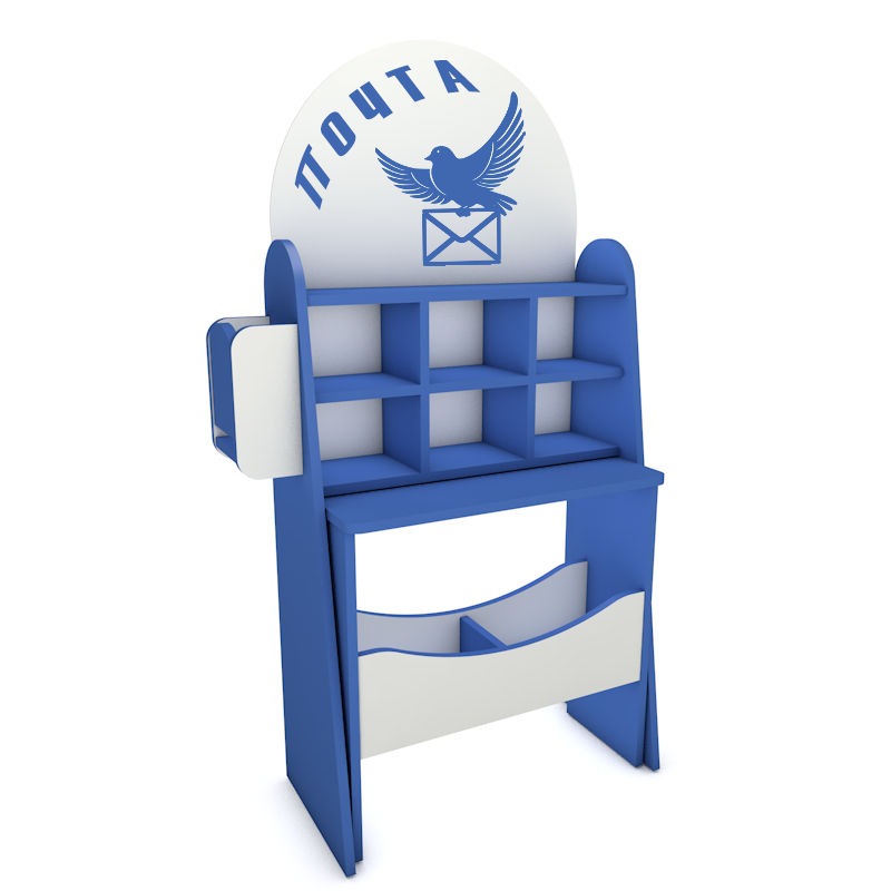 Оригинальный уголок для детских игр: здесь есть окошко "приема-выдачи", в которое люди обращаются с просьбой, и специальная стойка для писем с ячейками для сортировки конвертов и ящиком для отправления писем.