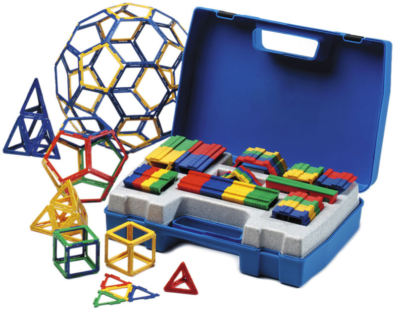 Набор деталей каркасного типа: 80 равносторонних треугольников (тип 1 малый), 40 прямоугольных треугольников, 60 равнобедренных треугольников, 24 равносторонних треугольников (тип 2 большой), 30 квадратов, 20 шестиугольников, 12 пятиугольников и 2 угломера.