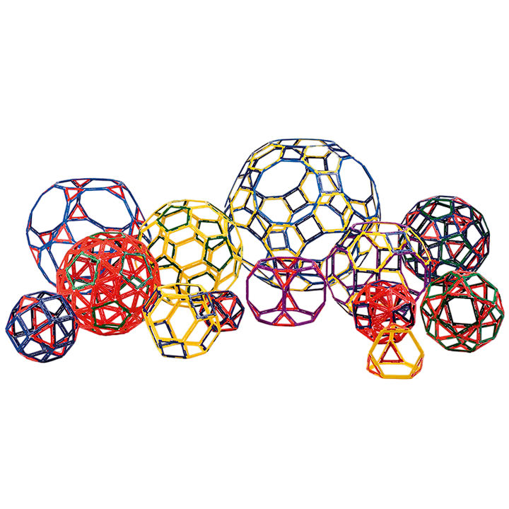 Набор предназначен для групповой игровой деятельности, для изучения основ математики, конструирования, моделирования и состоять из конструктивных элементов различных геометрических фигур каркасного типа с возможностью изучения и сборки всех известных Архимедовых тел (13 шт). Специальное шиповое соединение , расположенное на каждой стороне, позволяет деталям конструктора идеально крепиться друг к другу, благодаря чему имеется возможность создавать 2-мерные фигуры и 3-мерные геометрические тела. Развивает воображение и творческую активность. Игровой набор произведен из нетоксичного пластика стойкого к щелочам и моющим средствам.