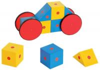 Комплектация: 32 пластиковых магнитных блока 2-х разных цветов (10 кубиков, 6 объемных прямоугольных треугольников, 8 сферических деталей, 8 цилиндрических деталей), 12 фигурок, 4 набора колес.