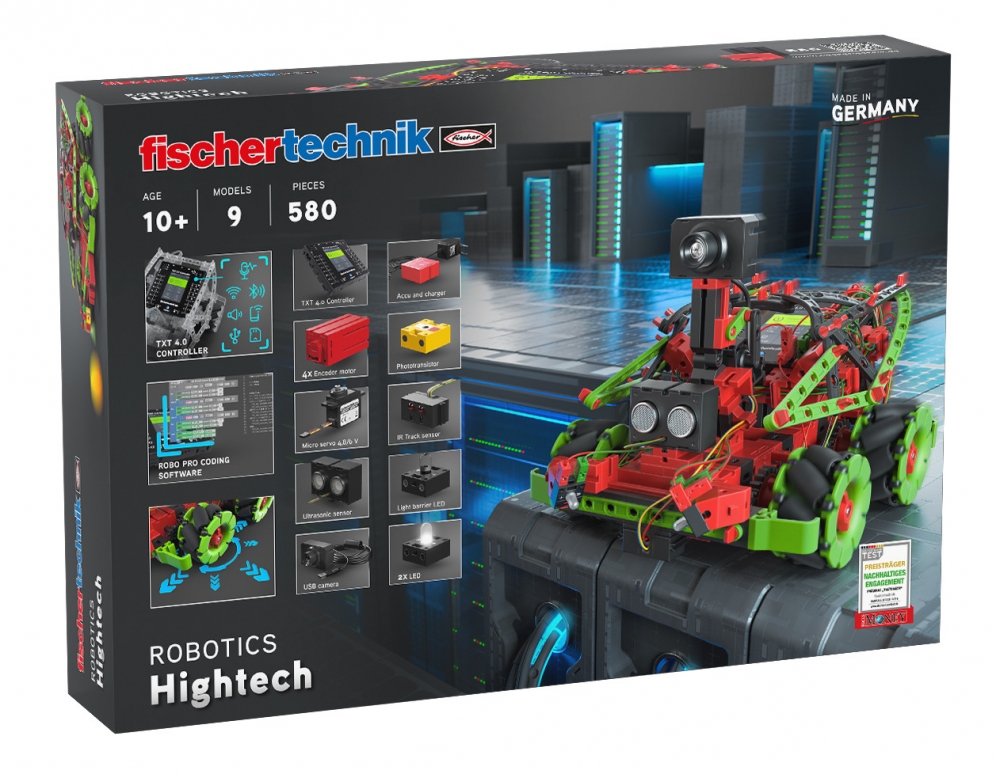 Напряжение питания: 9 В Модели для начинающих позволяют легко понять мир робототехники и программирования. Более опытные ученики могут начать работу со сложными моделями, такими как робот-художник или робот-футболист. Одной из отличительных особенностей данного конструктора являются «омни-колёса», которые приводятся в действие четырьмя моторами с энкодерами, и позволяют роботу двигаться в любом направлении. Также состав набора входит видеокамера, позволяющая роботу-футболисту распознавать мяч и забивать его в ворота. Новый контроллер TXT 4.0 работает с программным обеспечением ROBO Pro Coding, что открывает множество новых возможностей. Помимо графического блочного программирования, имеется возможность разрабатывать программы на языке программирования Питон (Python). Программное обеспечение не зависит от какой-либо конкретной операционной системы и может использоваться на мобильных устройствах.